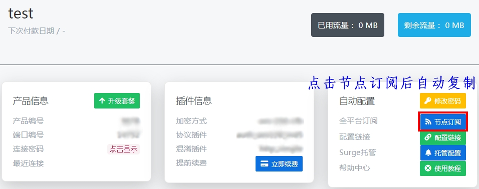 1. 『点我登录』客户区 — 点开『已激活的产品/服务』— 点击『节点订阅』